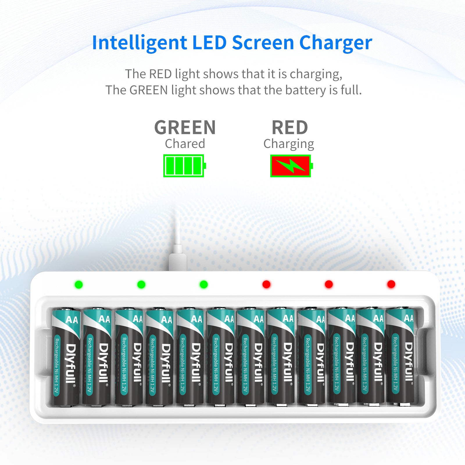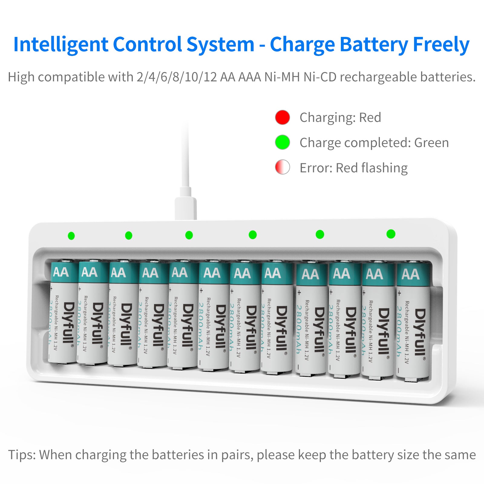 Dlyfull U12 12 Bays USB Charger for Ni-MH/CD Batteries 1.2V AA AAA Batteries